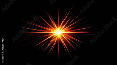 A bright orange light bursts from the center, spreading outward in a starburst pattern against a black background. Mystical Rays. Illustration