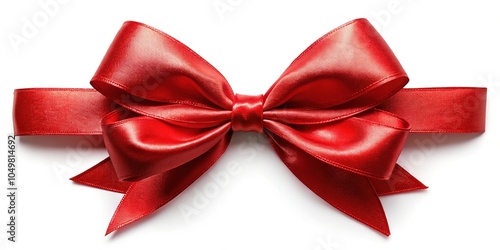 A bright red ribbon bow set on a white background, perfect for enhancing holiday décor and beautifully embellishing gifts for festive celebrations.