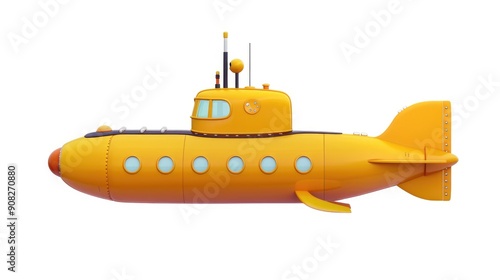 A bright yellow submarine floats in mid-air with no visible means of support, a surreal and imaginative scene