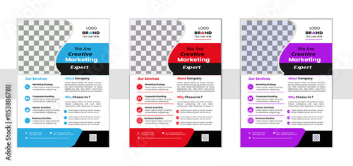 A bundle of 3 templates of different colors a4 flyer template, modern business flyer template, Business abstract vector template. Brochure design, cover modern layout, annual report, poster.