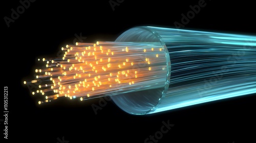 A bundle of fiber optic cables with fibers glowing brightly, demonstrating their ability to carry vast amounts of data