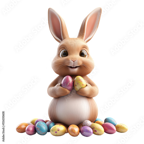 A bunny surrounded by chocolate Easter eggs, isolated on a transparent background, perfect for Easter, holiday celebrations, or festive-themed designs.