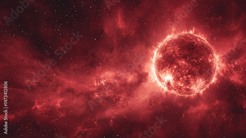 A burning apocalypse planet in space with fiery textures and glowing cracks, set against a dark cosmic backdrop. Blank caption space on the side symbolizes destruction, chaos, and planetary collapse.