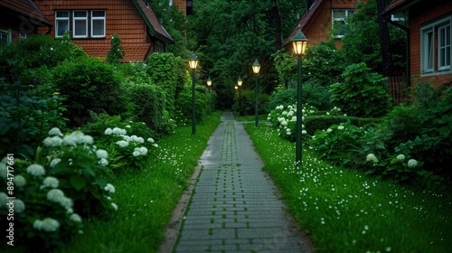 A Calm Street With An Empty Path At Night, Peaceful And Quiet