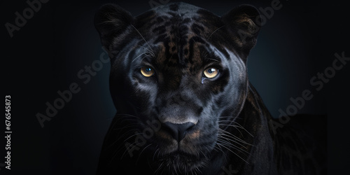 A captivating Panther portrait on a black background, Copy Space.