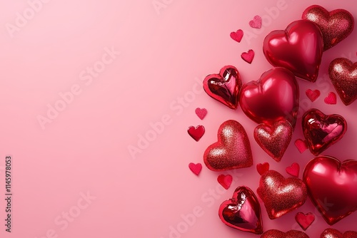 A cascade of radiant red hearts dances across a soft pink canvas, embodying love's sweet allure and the joy of Valentine's Day.