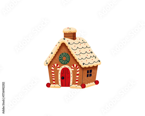 A charming and delightful gingerbread house, exquisitely decorated with festive icing and candy, perfectly embodying the spirit of holiday celebrations and winter warmth