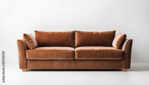 A chic, minimalist brown sofa with smooth upholstery, perfect for modern interiors, combining comfort and style seamlessly for any space
