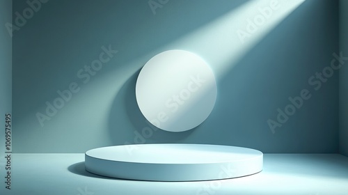 A Circular Platform and Oval Shape in a Minimalist Room with a Sunbeam