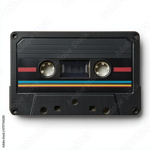 A classic audio cassette tape, neatly presented and isolated on a clean white background.