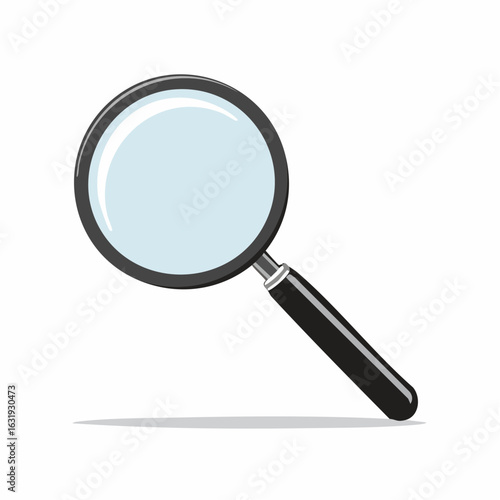 A classic black magnifying glass illustration isolated on a white background. Symbol for search, discovery, and detailed inspection.