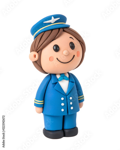 a clay Cute, Flight Attendant, happy and smile, isolated on a transparent background