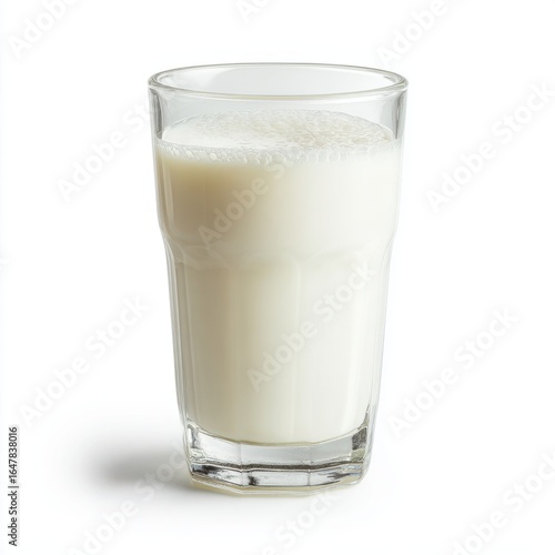 A clear glass of plain kefir, isolated on a pure white background. Probiotic, healthy drink.