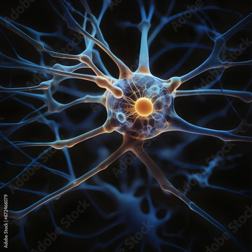 A close up digital illustration of a nerve cell.