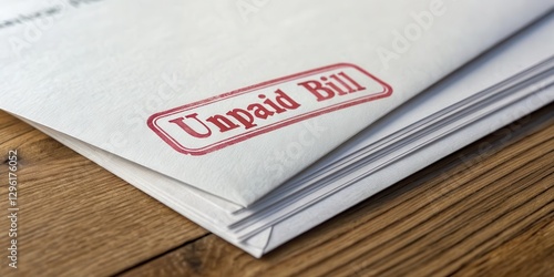 A close-up image of a stack of papers featuring a prominent "Unpaid Bill" stamp, highlighting financial obligations and reminders.