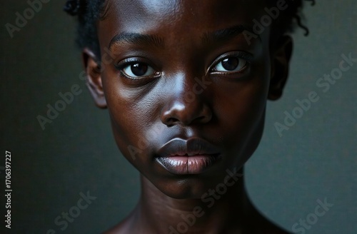 A close-up of a beautiful black woman beaming with a captivating gaze. High quality photo