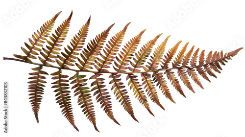 A close-up of a brown fern frond with a dark background. The frond is detailed with intricate patterns.