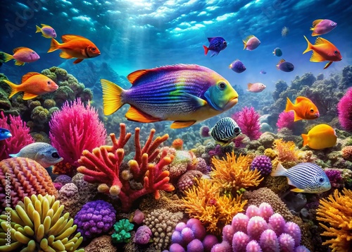 A Close-Up of a Colorful Fish Swimming Amidst Vibrant Coral and Underwater Flora, Capturing the Beauty of Marine Life in a Stunning Underwater Environment