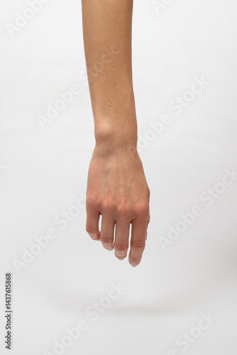 A Close-Up of a Hand and Arm Against a White Backdrop