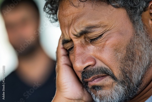 A close-up of a man displaying emotional intensity, showcasing the depth of feelings and vulnerability in human experience, evoking empathy and connection.