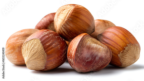 A close-up of a pile of hazelnuts, showcasing their natural brown shells and textured surfaces.