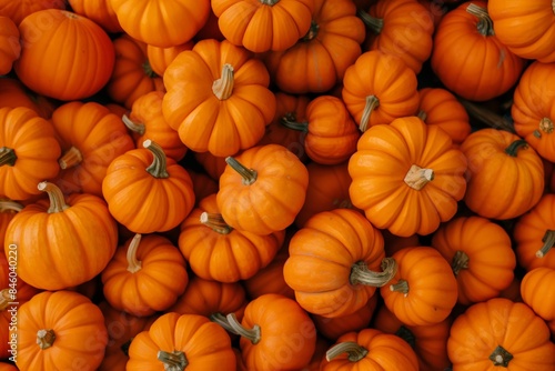 A close-up of a pile of mini pumpkins, showcasing the abundance of the harvest season. Perfect for autumn and festive themes. Flat Lay. Top View