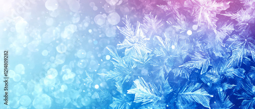 A close-up of abstract ice crystals with sharp, jagged formations, illuminated by soft pink and purple gradient lighting, creating a vibrant and dreamy winter texture.Generative ai