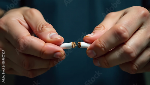 A close-up of hands breaking a cigarette in half, symbolizing the decision to quit smoking.