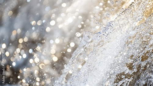 A close-up of sparkling water droplets, creating a shimmering effect with light glinting off the surface, evoking a sense of freshness and movement.