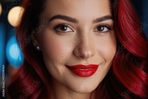 A close-up shot of a woman with bright red hair, focusing on her facial features