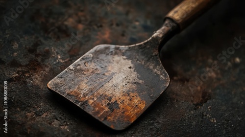 A close-up shot of the spatula blade, capturing the details and any wear, with the handle softly blurred behind it.
