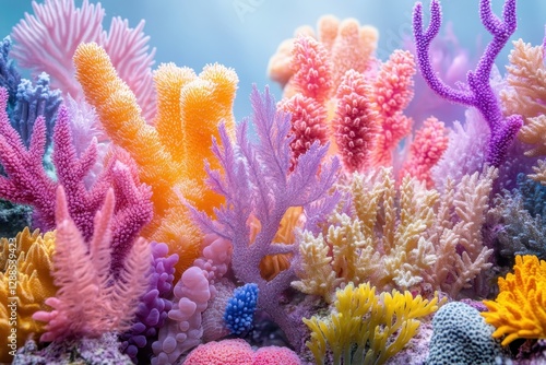 A close-up view of a coral reef, showcasing the intricate details of the coral formations.