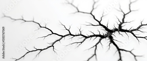 A close-up view of intricate, branching patterns resembling neurons or synapses, showcasing organic forms against a stark white background.