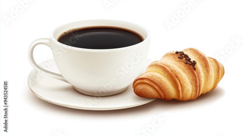 A coffee cup with a pastry on the side, dessert element, realistic style, warm and inviting, isolated on white background