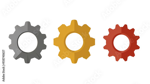A cogwheel icon, gray and red and yellow tint, white background, transparent background, png file, Generative AI illustrations.