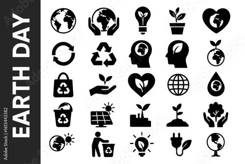 A collection of 25 Earth Day-related editable Black Silhouette Icon.