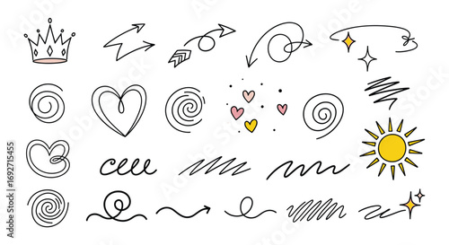 A Collection of Charming Dotted Line Illustrations Featuring Hearts Arrows Swirls and Decorative Elements for Creative Projects