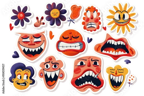 A collection of colorful stickers featuring different faces