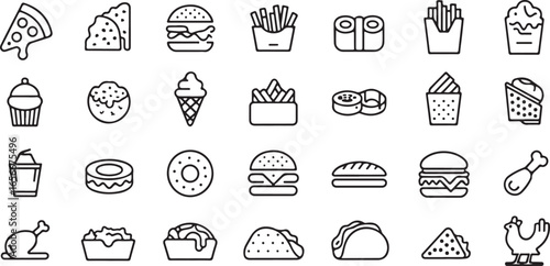 A Collection of Fast Food and Dessert Icons in a Grid Layout