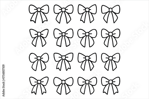A collection of simple black and white bow illustrations arranged in a grid silhouette, Art & Illustration