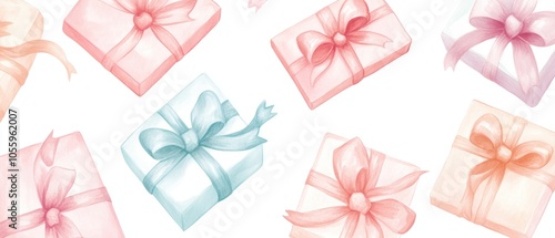 A colorful array of boxes with bows on them