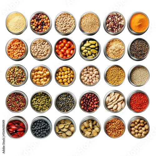 A Colorful Array of Spices and Legumes in Jars for Culinary Inspiration on transparent background