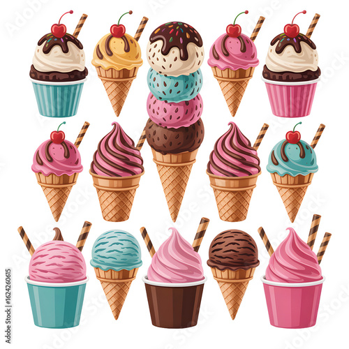 A colorful assortment of delicious ice cream cones and cups