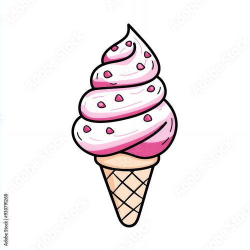 A colorful ice cream cone with pink swirls and sprinkles, perfect for dessert lovers.