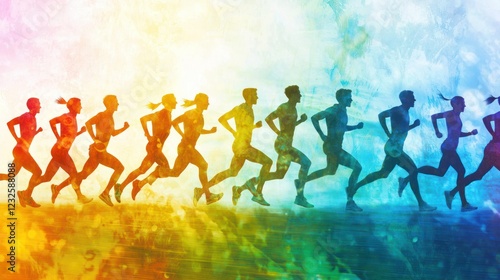 A competitive sports event with athletes from various disciplines, each showcasing their endurance to reach the finish line.