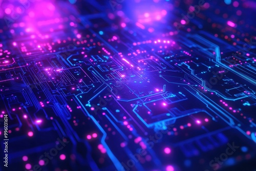 A computer chip with a purple and blue background, generative ai image