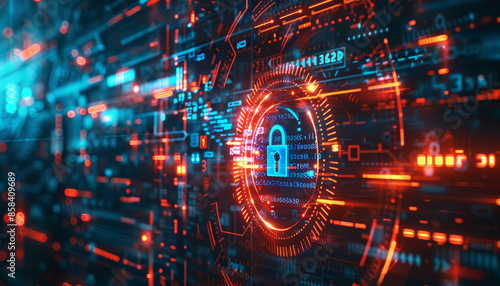 A computer screen with a blue and orange circle with a key in it by AI generated image