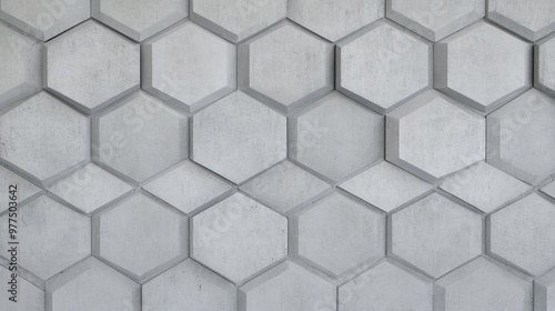 A concrete wall with polished mosaic tiles. Bricks in three dimensions and stacked to create a hexagonal background.