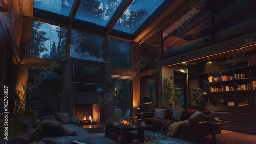 A Cozy Living Room on a Rainy Night