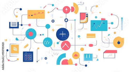 a creative mind map chart clipart, brainstorming process element, colorful connected nodes, flat design, isolated on white background